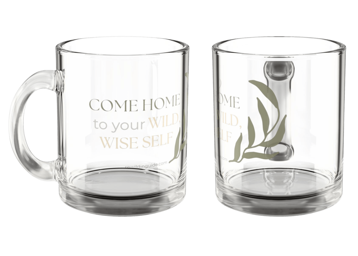 A daily reminder to reconnect with who you are. This glass mug features the phrase “come home to your wild, wise self”—a gentle nudge to slow down and return to yourself in the midst of a busy day. Whether you’re starting the morning with cacao or winding down with tea, it’s a simple way to bring a bit more presence and intention into your daily routine.